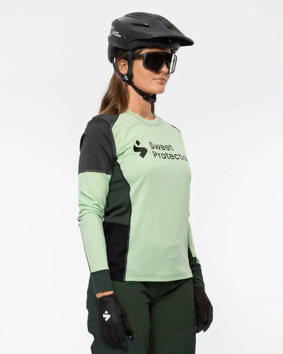 Sweet Protection Hunter Merino Hybrid LS Jersey W er den perfekte trøyen for sti- og terrengsykling. Merinoullfiberene gir isolasjon uansett om du er våt eller tørr – og sammen med de strategisk forsterkede områdene på skuldrene, øverste del av ryggen, og nedre del av ryggen er denne trøyen utrolig slitesterk. På grunn av ullfiberene er den utrolig komfortabel og pustende dagen lang. Du kan selvfølgelig bruke albuebeskyttelse under eller over, alt ettersom hva du foretrekker.